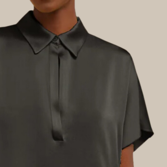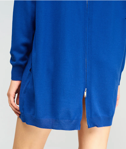 Robe avec zip central et col en taffetas Aloisia Bleu