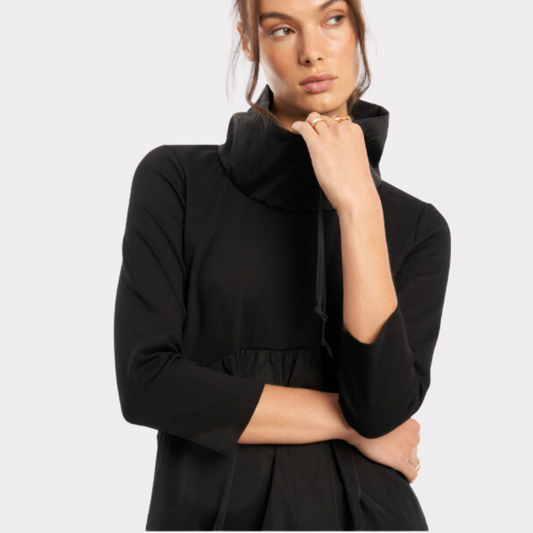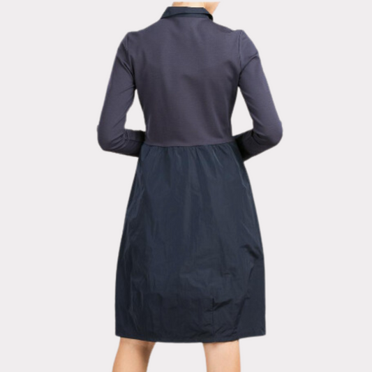 Robe avec zip central et col en taffetas Aloisia Bleu