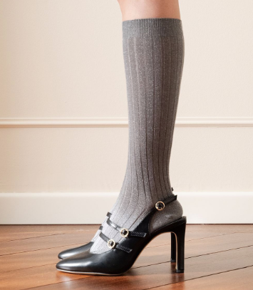 Chaussettes hautes en laine douce ornées d'un léger fil de lurex.