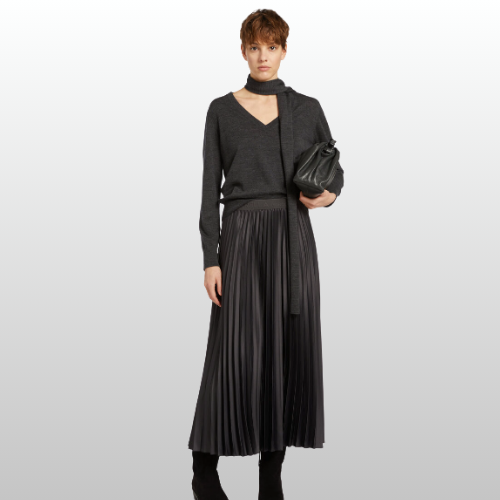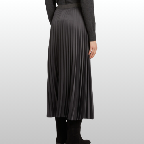 L'élégance des plis embrasse l'hiver avec grâce, s'associant parfaitement à des pulls doux et des bottes. Impeccable, toujours. - Tissu principal contenant plus de 50 % de polyester recyclé - Jupe plissée en satin technique - Coupe évasée - Ceinture élastique personnalisée - Plissé intégral - Non doublé