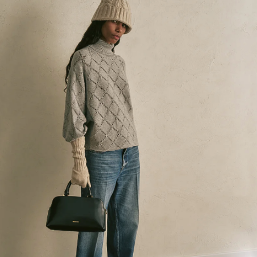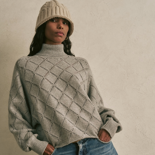 Col roulé en cachemire mélangé avec losanges perforés. Coupe standard.