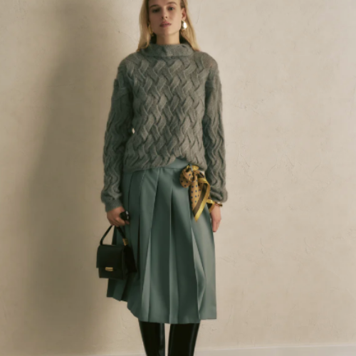 Jupe en flanelle. Modèle plissé. Ceinture à double passants. Fermeture éclair latérale. Coupe standard.