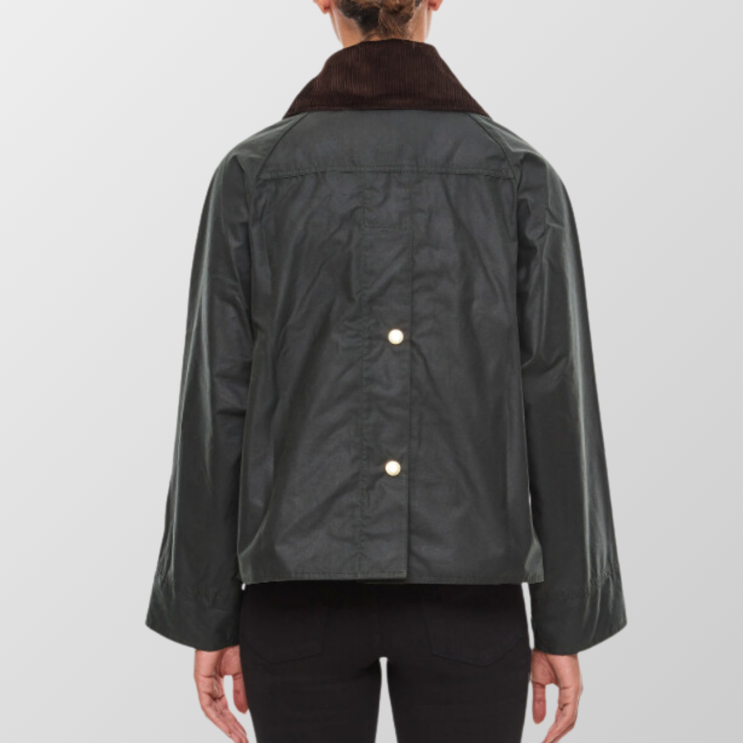 En coton ciré, col côtelé, poches plaquées avec rabat, fermeture zippée et bouton-pression, poches zippées, fente arrière, logo Barbour brodé sur la poche